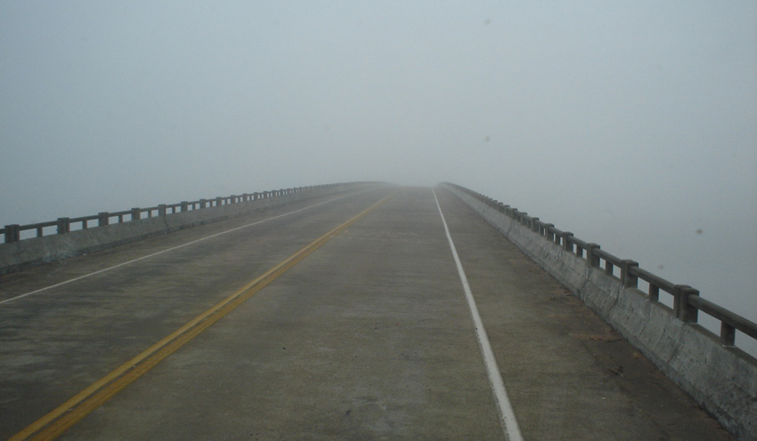 A ponte do Rio Taquari em Roca Sales perdida na neblina